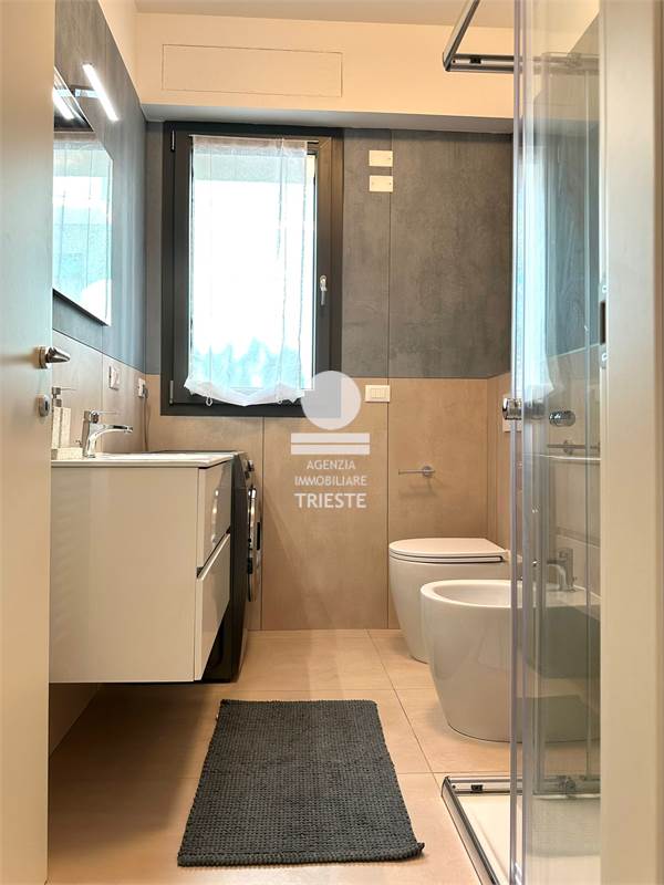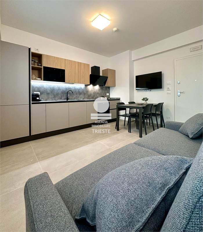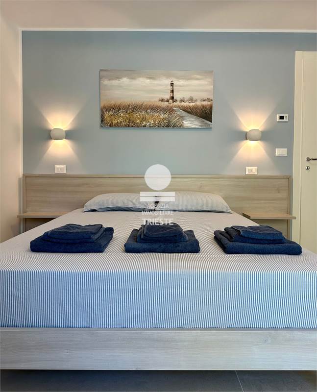 In the new beachfront vacation rental complex, exclusively for Trieste Real Estate Agency Palms Beach Pesaro - Residence, we offer apartment 2, with last availability. Located on the ground floor, with parking space, elevator, direct beach access, and a beautiful terrace, the unit comprises a living area with a double sofa bed and an open-plan kitchen equipped with all appliance, bathroom with shower and washing machines, air conditioning throughout, and high-speed Wi-Fi. For your perfect vacation in Pesaro, choose the perfect stay! The only vacation rentals with direct beach access! PALMS BEACH - VIALE TRIESTE 52, PESARO. For information on prices and availability: Ottavia 3338842445