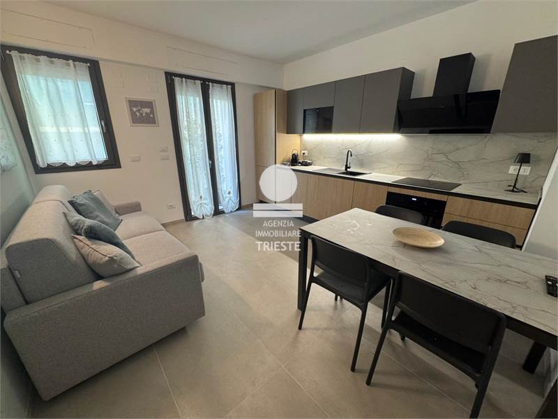 In the new beachfront vacation rental complex, exclusively for Trieste Real Estate Agency Palms Beach Pesaro - Residence, we offer apartment 7. Located on the first floor, with parking space, elevator, direct beach access, and a beautiful lateral terrace, the unit comprises a living area with a double sofa bed and an open-plan kitchen equipped with all appliance, bathroom with shower and washing machines, air conditioning throughout, and high-speed Wi-Fi. For your perfect vacation in Pesaro, choose the perfect stay! The only vacation rentals with direct beach access! PALMS BEACH - VIALE TRIESTE 52, PESARO. For information on prices and availability: Ottavia 3338842445